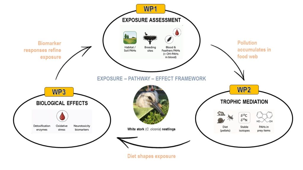 Projekt se temelji na integriranom pristupu „izloženost – put (ishrana) – učinak”, kombinirajući analize okolišnih uzoraka, sastava ishrane te bioloških matrica (krv i perje). Dobiveni rezultati doprinijet će boljem razumijevanju prijenosa PAH-ova u kopnenim hranidbenim mrežama te razvoju znanstveno utemeljenih alata za biomonitoring i procjenu rizika u poljoprivrednim staništima.