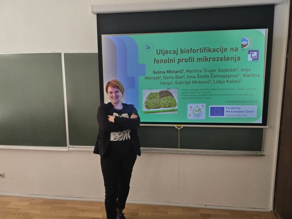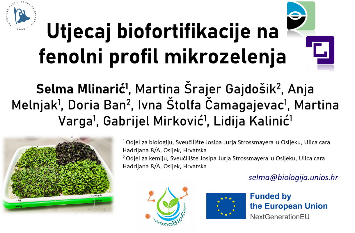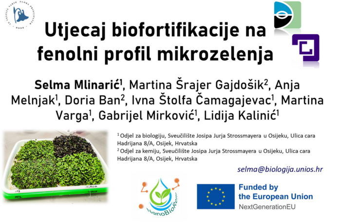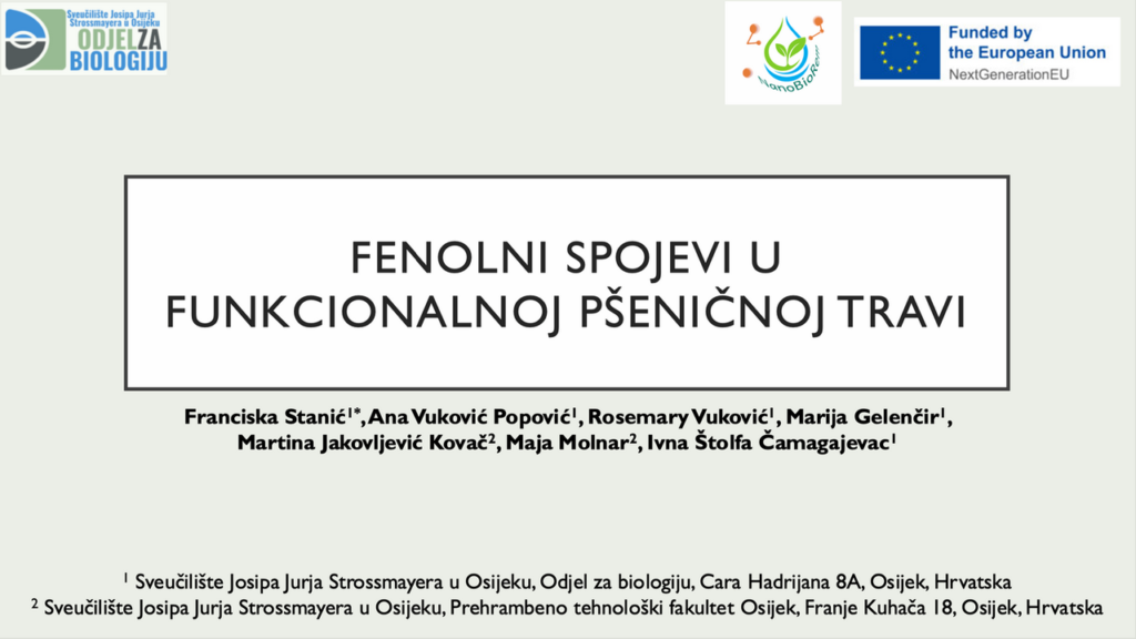 Na simpoziju su predstavljeni rezultati ostvareni u okviru projekta „Zelena sinteza nanočestica – nove mogućnosti za biofortifikaciju mikrozelenja i remedijaciju vodenih sustava“ (NanoBioRem), financiranog od Europske unije kroz program NextGenerationEU. Rezultati projekta prezentirani su kroz dva kratka priopćenja: „Utjecaj biofortifikacije na biokemijski profil mikrozelenja“, koje je održala izv. prof. dr. sc. Selma Mlinarić, te „Fenolni spojevi u funkcionalnoj pšeničnoj travi“, koje je održala studentica Franciska Stanić.