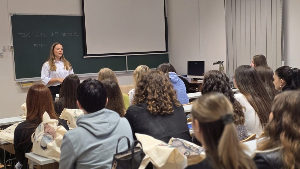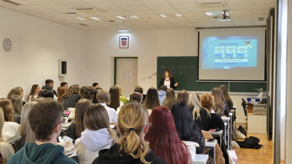 Odjel i njegove aktivnosti predstavile su pročelnica Odjela prof. dr. sc. Tanja Žuna Pfeiffer, zamjenica pročelnice za nastavu i studente izv.prof.dr.sc. Ljiljana Krstin, zamjenica pročelnice za znanstveno-istraživačku djelatnost doc.dr.sc. Anita Galir te predsjednica Studentskog zbora Barbara Tunjić.