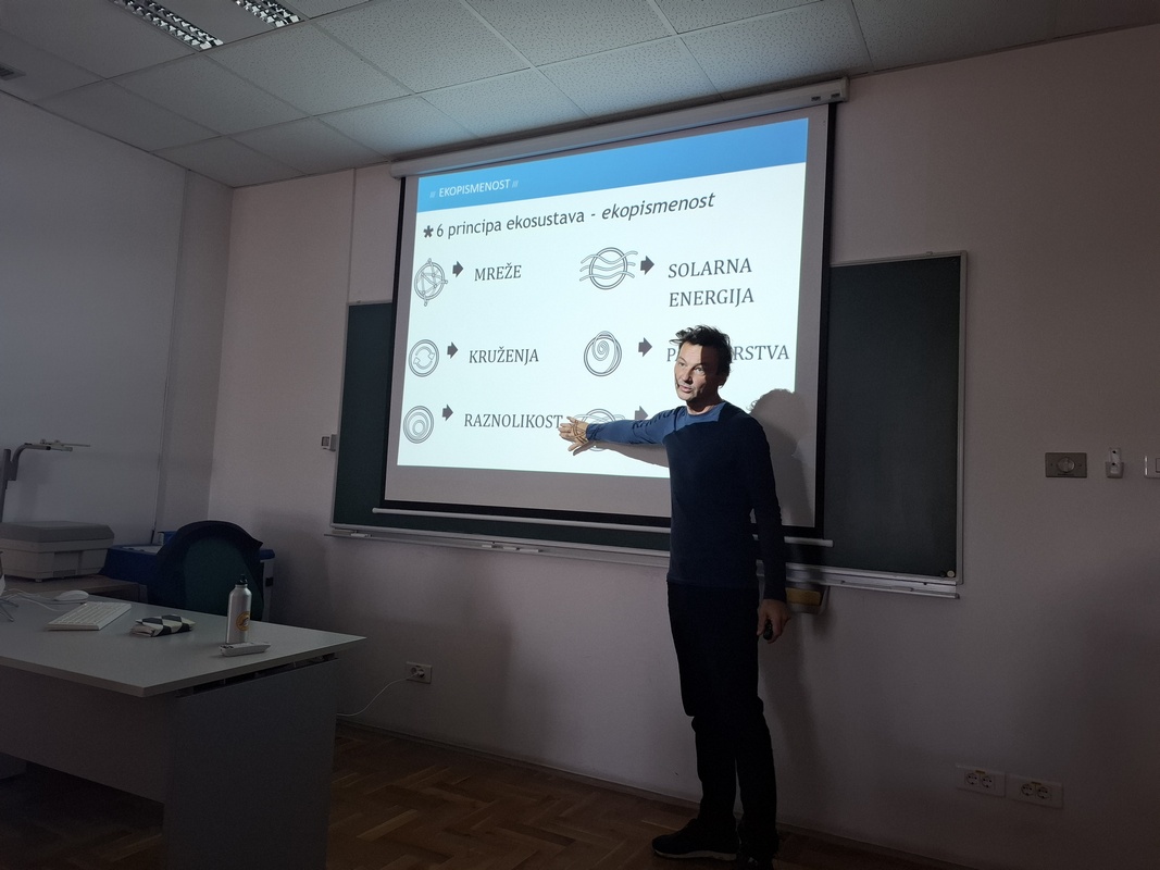 U sklopu studentskog projekta Zasadi znanje: Održivi rast od sjemenke do života, koji provode studenti 2. godine diplomskog sveučilišnog studija Biologija i kemija; smjer: nastavnički, pod vodstvom Ivane Jagodić i mentorstvom izv. prof. dr. sc. Irene Labak, 5. studenog 2025. godine održano je predavanje pod naslovom „Što je održivi razvoj u 21. stoljeću?“ Predavanje je održao dr. sc. Dražen Šimleša, s Instituta društvenih znanosti Ivo Pilar te aktivni član i voditelj projekata u udruzi Zelena mreža aktivističkih grupa (ZMAG), koja djeluje na području održivog razvoja, društvene ekonomije i permakulture. Studenti Odjela za biologiju i njihovi nastavnici imali su priliku čuti i raspravljati o tome što održivi razvoj znači u suvremenom društvu te kako ga živjeti u praksi, a ne samo o njemu teoretski govoriti. Predavanje je potaknulo studente na razmišljanje o tome kako osobna, profesionalna i društvena odgovornost mogu postati pokretač stvarnih promjena, a ne samo teorijskih rasprava o održivom razvoju.