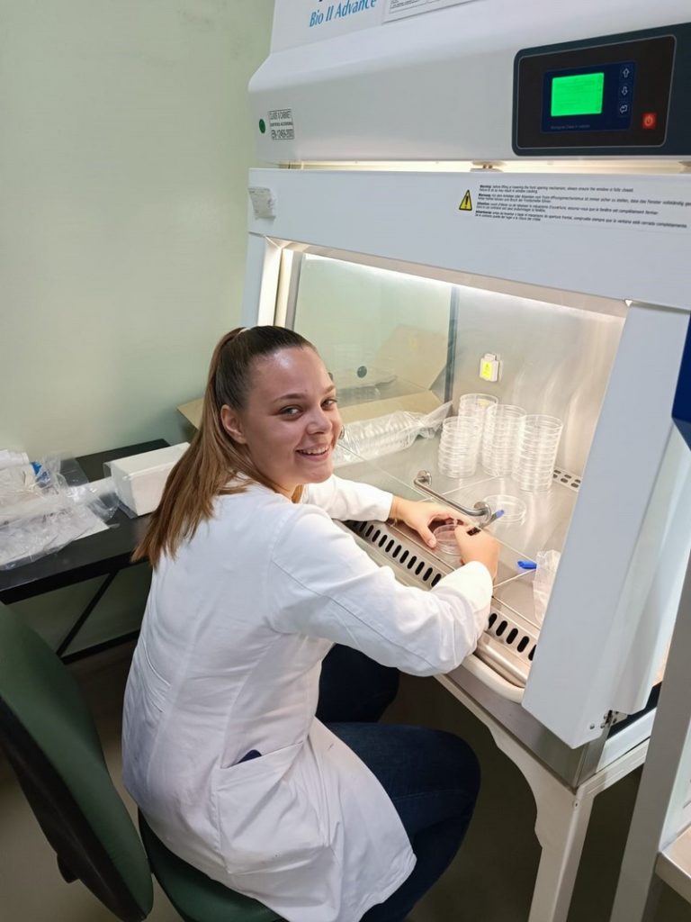 U laboratoriju za ekologiju voda upoznala se s procesom spaljivanja membrana nakon mikrobiološke filtracije, što je važan korak u dekontaminaciji laboratorijskog materijala te sastavni dio analize mikrobiološke kvalitete voda. Osim mikrobioloških metoda, studentica je imala priliku steći uvid u područje aerobiologije i morfologije peludnih zrnaca te se upoznala s radom Burkardovog aparata za mjerenje koncentracije peludi u zraku, čime je dodatno proširila svoje razumijevanje biološkog monitoringa okoliša.