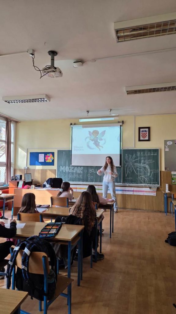 ​Cilj radionice bio je približiti učenicima neurobiologiju emocija – objasniti im gdje i kako točno osjećamo ljubav te koju ulogu u tome igraju „hormoni sreće“: oksitocin, dopamin i serotonin. Kroz interaktivne zadatke, kvizove i igru, učenici su na zabavan način usvojili nove pojmove i istražili što se događa u našem mozgu kada smo sretni.