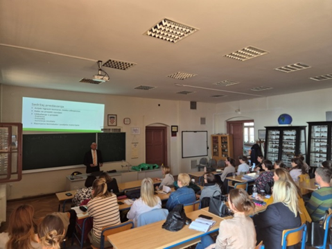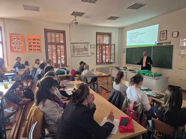 Dana 25. ožujka 2026., prof. dr. sc. Enrih Merdić održao je predavanje na temu aktivnog istraživanja, praćenja i proučavanja invazivnih vrsta komaraca uz pomoć pristupa citizen science, odnosno uključivanja učenika u znanstvena istraživanja. Predavanje je ujedno i poziv za uključivanje u projekt „Razvoj i neurobiološka osnova djelovanja prirodnih repelenata komaraca u svrhu održivog razvoja: povezivanje znanstvenih spoznaja i nastavne prakse (REPEL). Predavanje je održano u Prvoj Sušačkoj Hrvatskoj Gimnaziji u Rijeci, a sudionici su bili predstavnici Županijskog stručnog vijeća učitelja i nastavnika biologije Primorsko-goranske županije. Predavanju je prisustvovalo 36 učitelja i nastavnika biologije koji su iskazali interes za sudjelovanje u projektu.